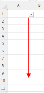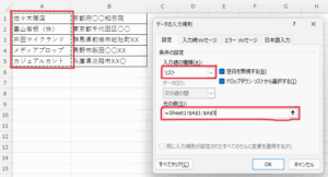 入力値の種類を”リスト”にして元の値の箱にシート1をクリックしてから”A1:A5”までドラッグします。